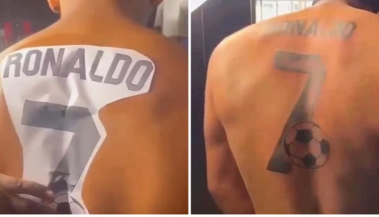 وأضاف: “أنا معجب للغاية برونالدو؛ أحب أسلوبه وعمله الشاق. هو أيضًا جاء من عائلة من الطبقة المتوسطة ويمكنني أن أتواصل معه. يعجبني كثيرا لذلك قررت أن أرسم على ظهري اسمه ورقمه”.