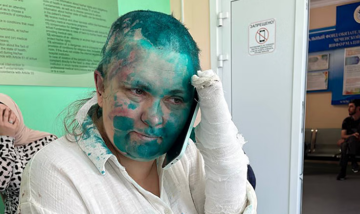 وفي صور نشرتها عبر تلغرام صحيفة نوفايا غازيتا، ظهرت ميلاشينا على سرير مستشفى مع ضمّادات على ذراعيها، فيما رشّ المعتدون على وجهها مادة خضراء اللون وقد بدا عليه الانتفاخ.