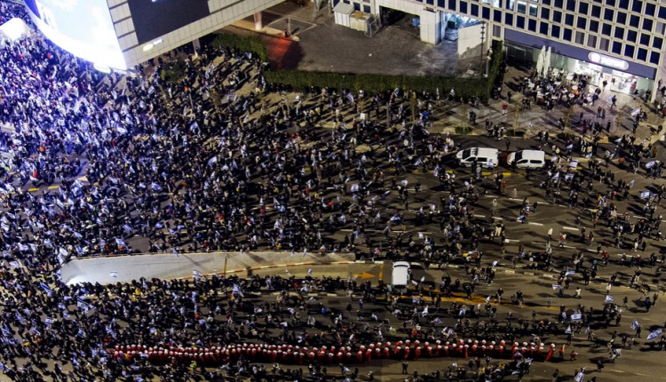 وطالب المتظاهرون الحكومة الإسرائيلية بالتخلي عن خطة التعديلات القضائية التي تعتبرها المعارضة الإسرائيلية انقلابا على الديموقراطية والمنظومة القضائية في إسرائيل .