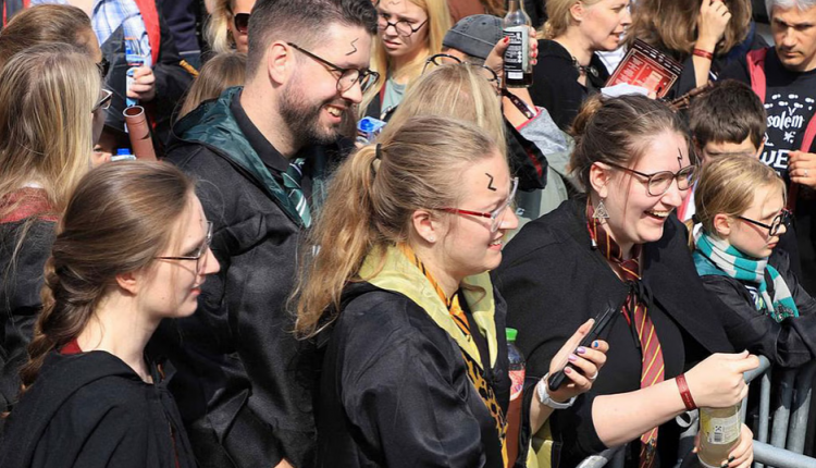 وأقيم هذا التجمع كجزء من يوم مخصص للاحتفال بذكرى طرح دار النشر كارلسن فيرلاغ، ومقرها هامبورغ، أول مجلد باللغة الألمانية من السلسلة الأدبية الأكثر مبيعاً قبل 25 عاماً.