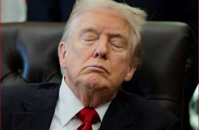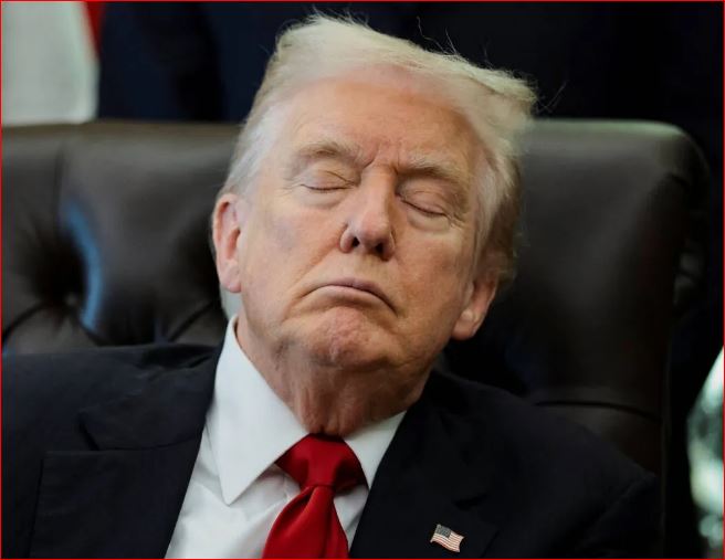 انتشرت صورٌ للرئيس الأميركي دونالد ترمب على مواقع التواصل الاجتماعي، وهو يُغمض عينيه خلال حضوره في المكتب البيضاوي الأسبوع الماضي؛ حيث استغلَّ معارضو الرئيس اللقطات لإثارة تساؤلاتٍ حول أداء ترمب في العمل.